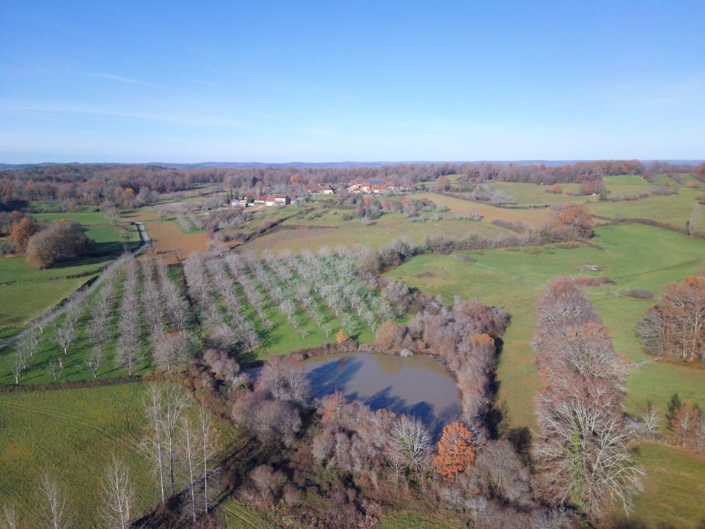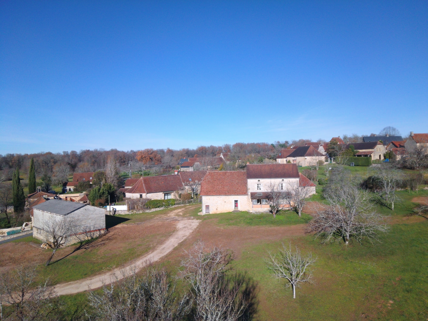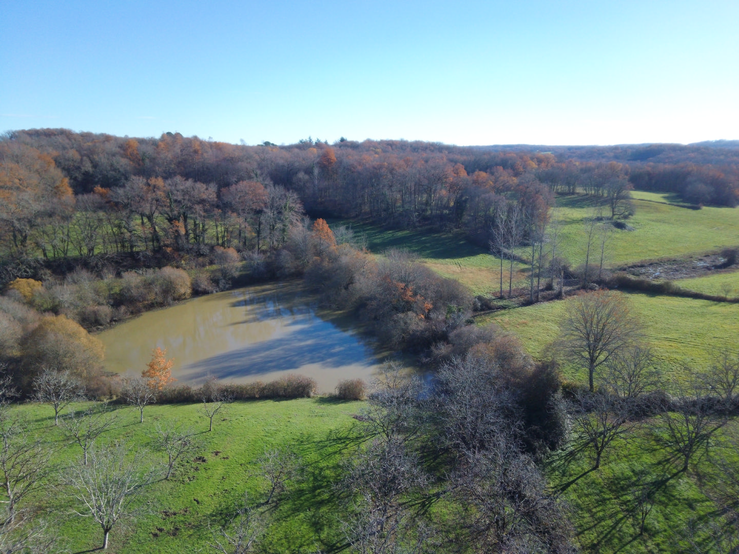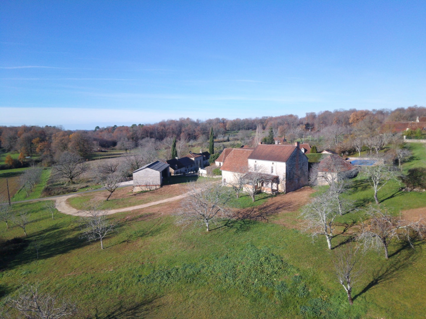 En Périgord Noir, sur les hauteurs, Propriété à rénover sur environ 4 hectares de terrain avec étang. Toitures neuves. Rénovation intérieure à réaliser.