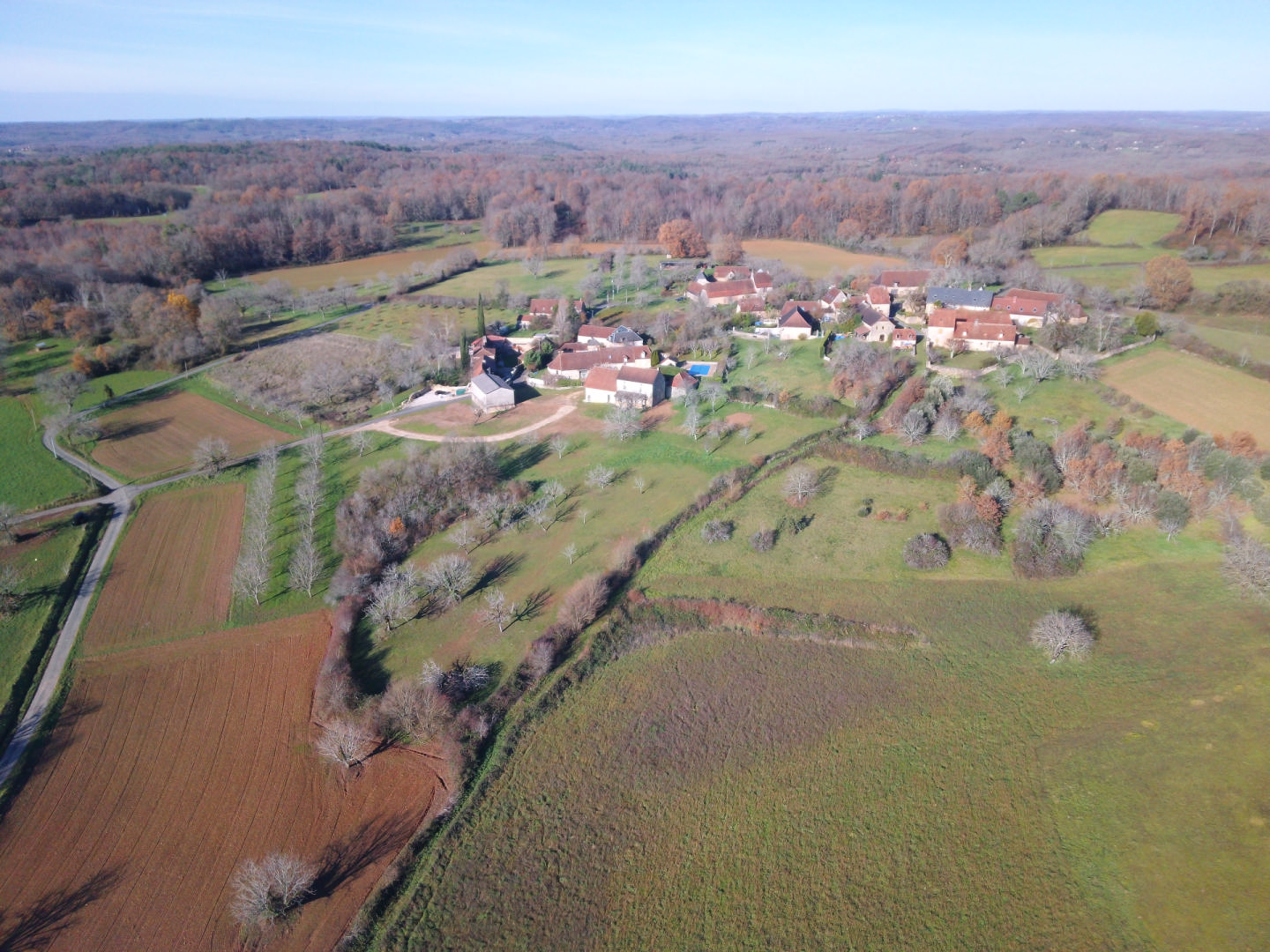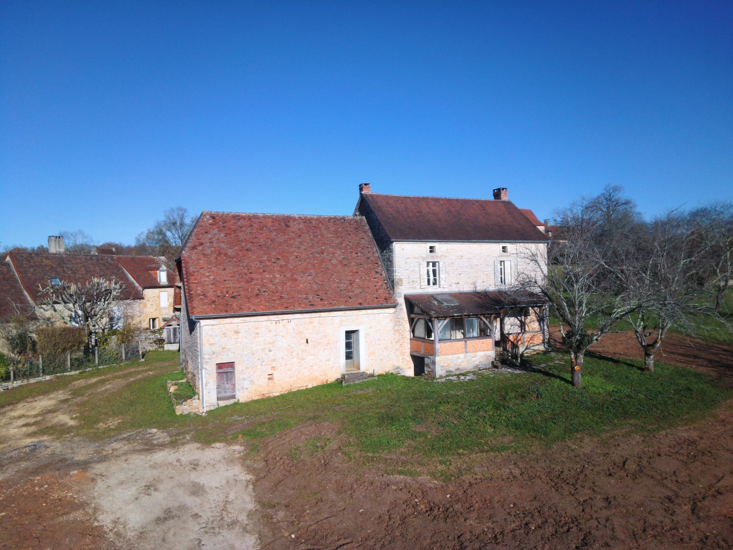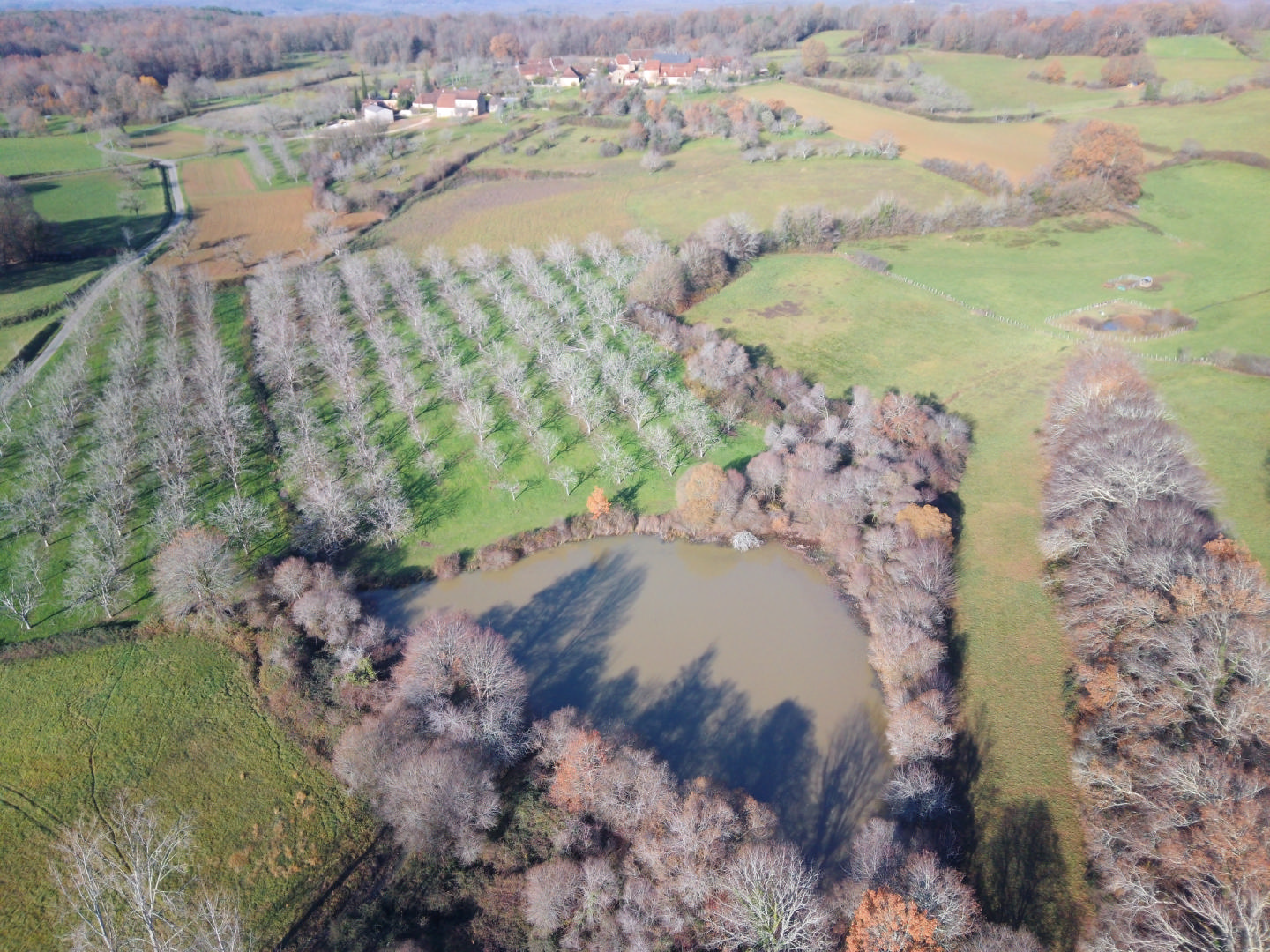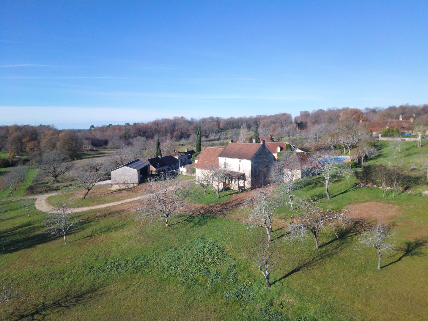 En Périgord Noir, sur les hauteurs, Propriété à rénover sur environ 4 hectares de terrain avec étang. Toitures neuves. Rénovation intérieure à réaliser.
