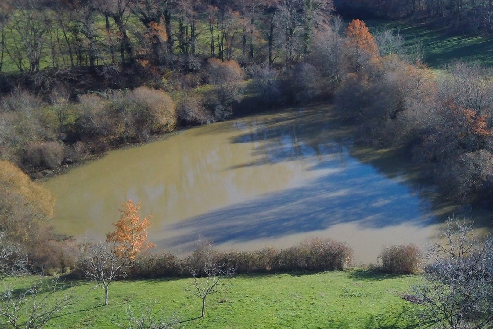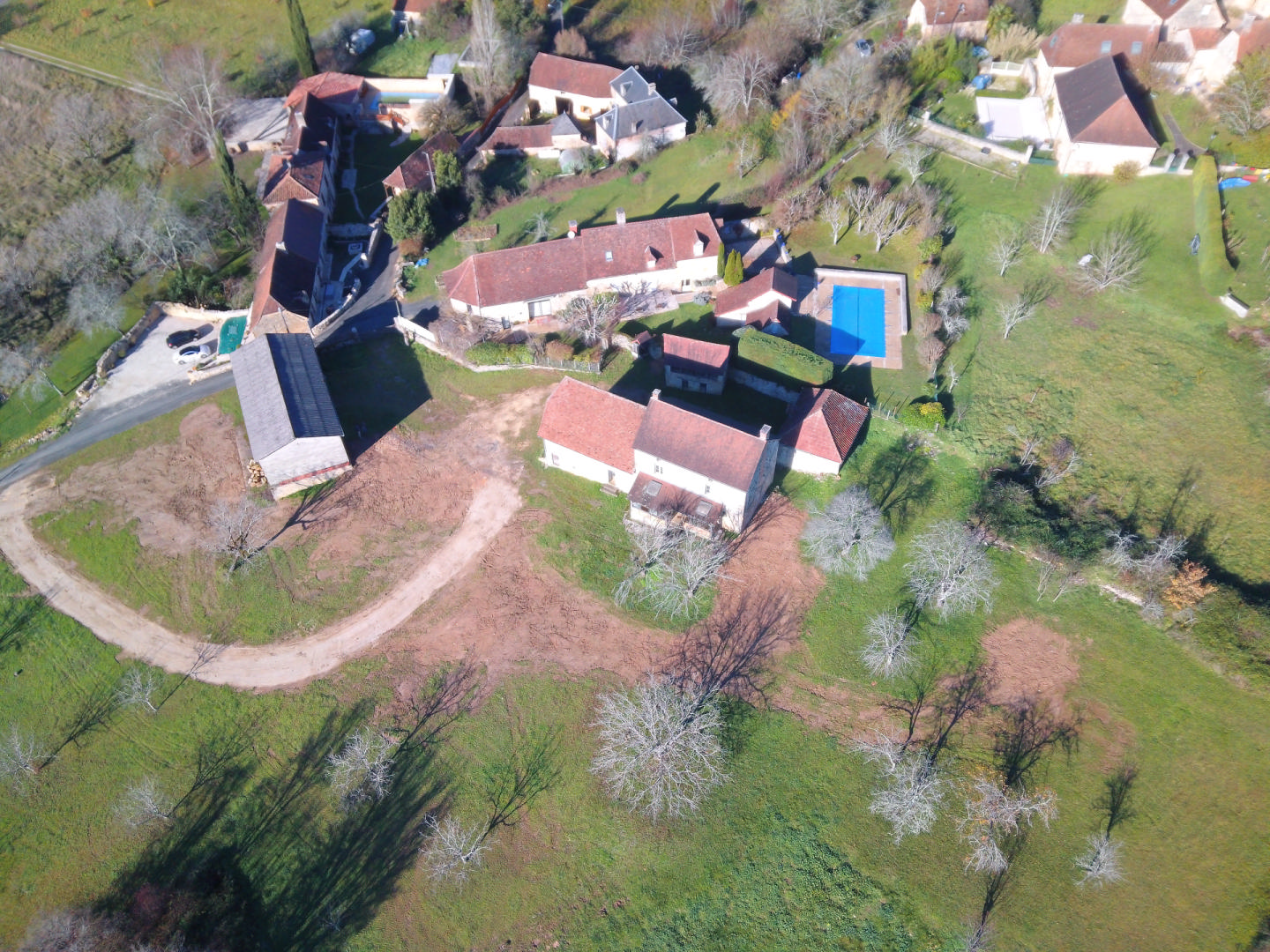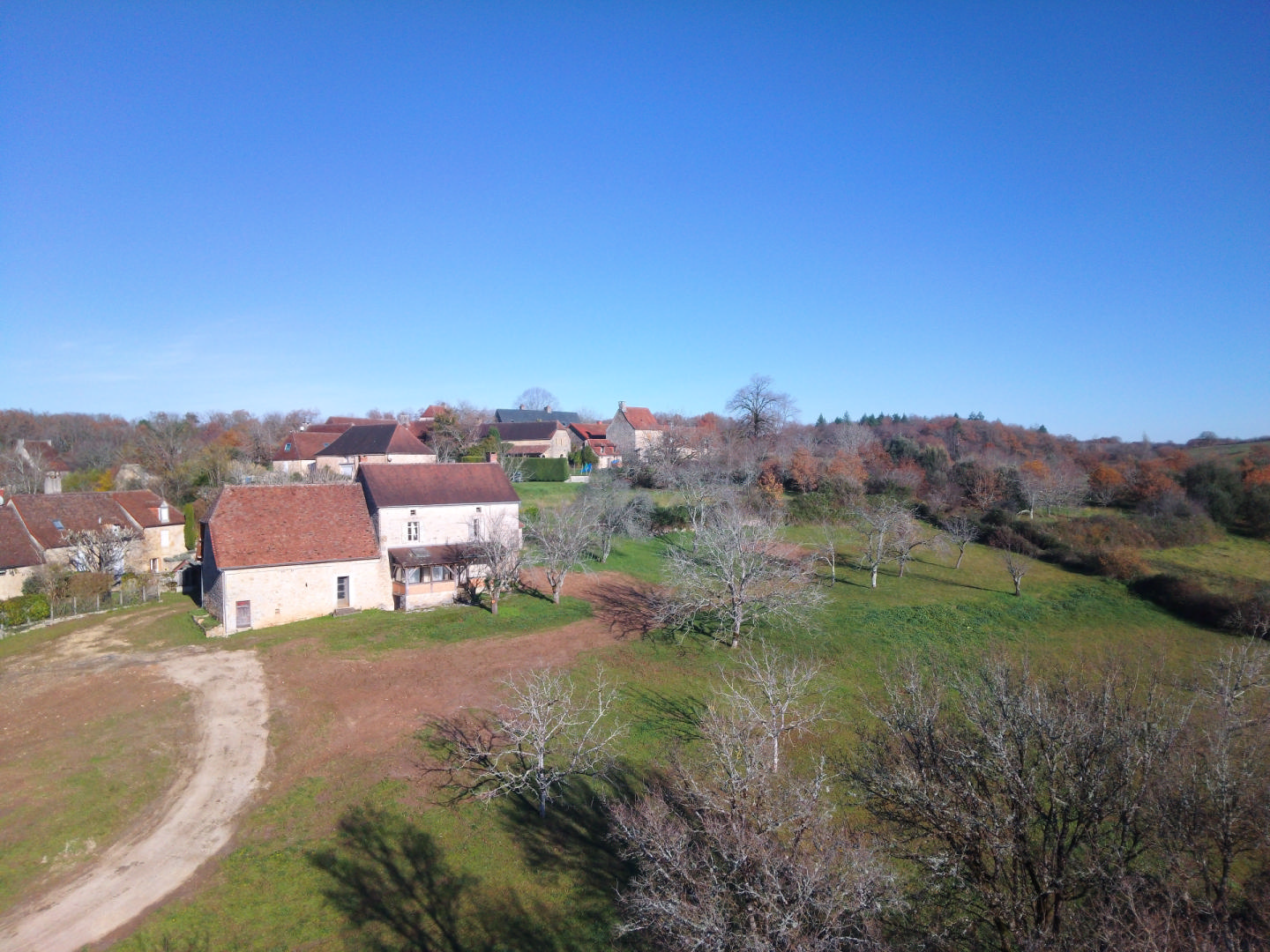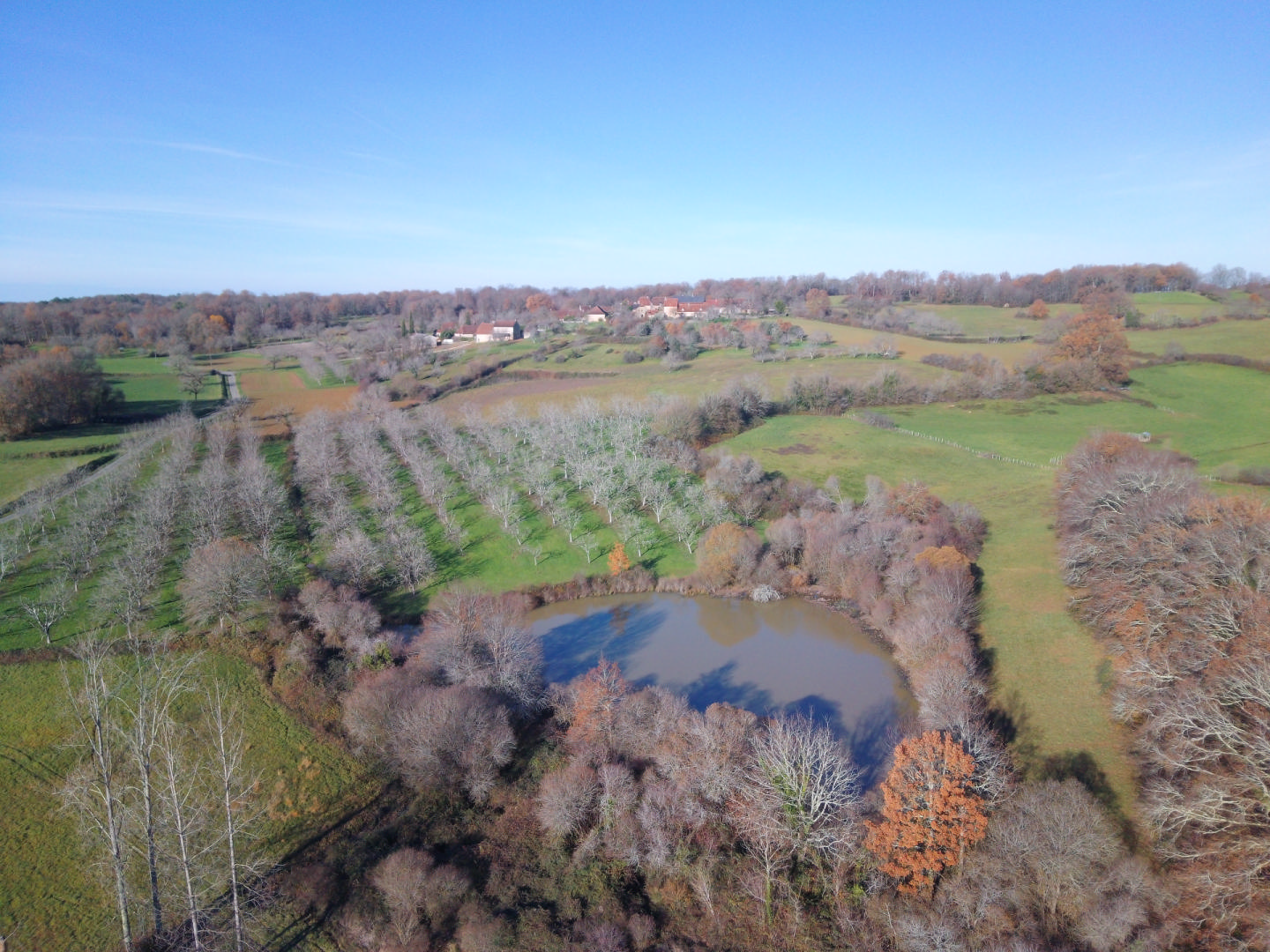 En Périgord Noir, sur les hauteurs, Propriété à rénover sur environ 4 hectares de terrain avec étang. Toitures neuves. Rénovation intérieure à réaliser.