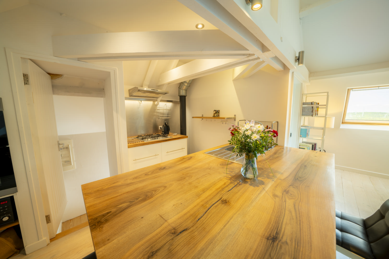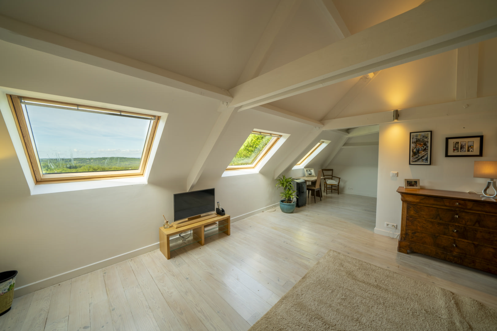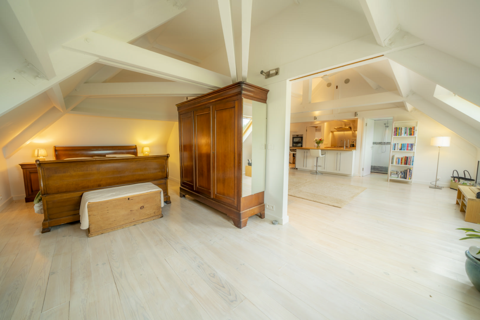 - Annexe comprenant en rdc un grand espace atelier de 75 m² et un appartement à l'étage de 50 m² avec séjour cuisine, chambre, salle d'eau wc.