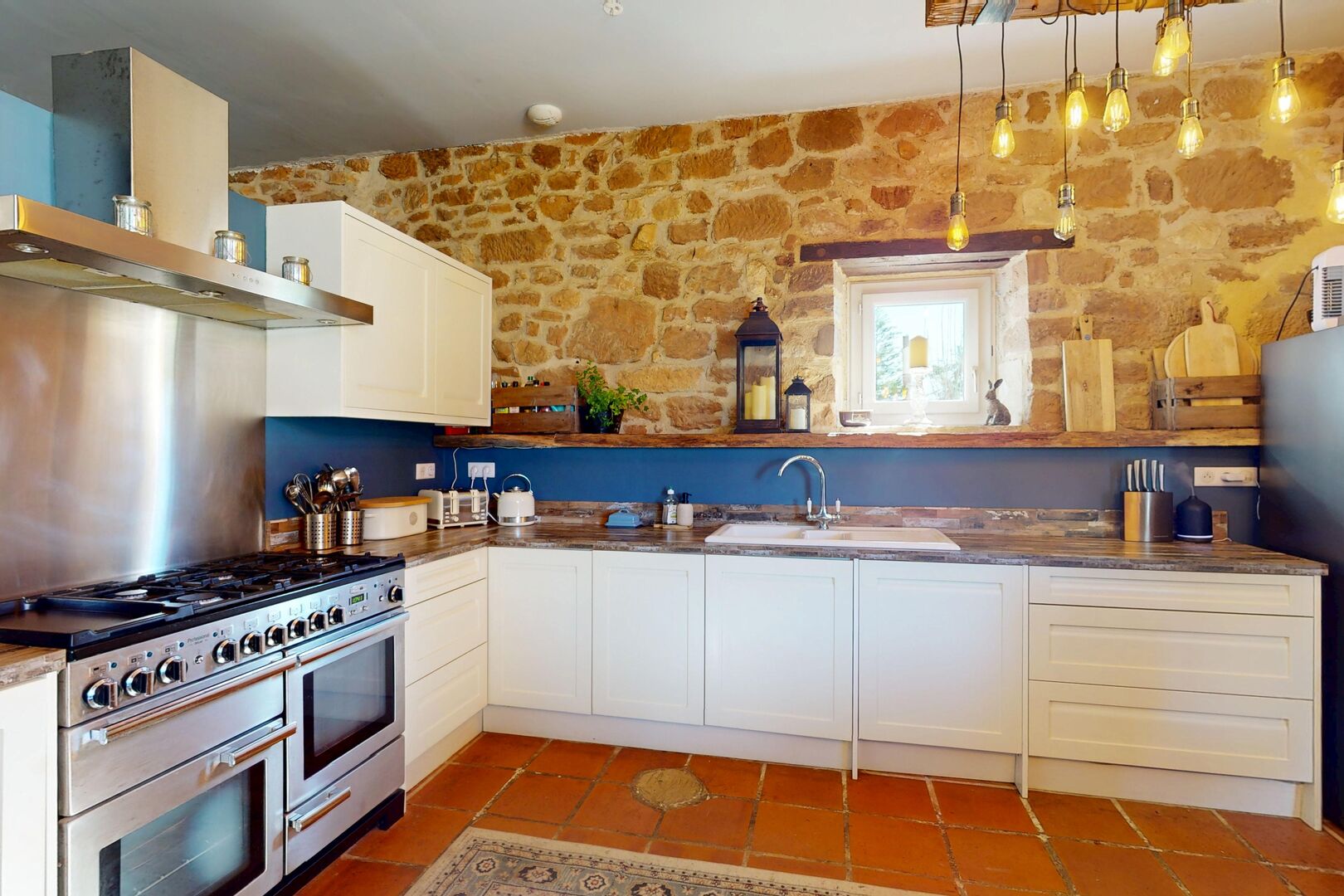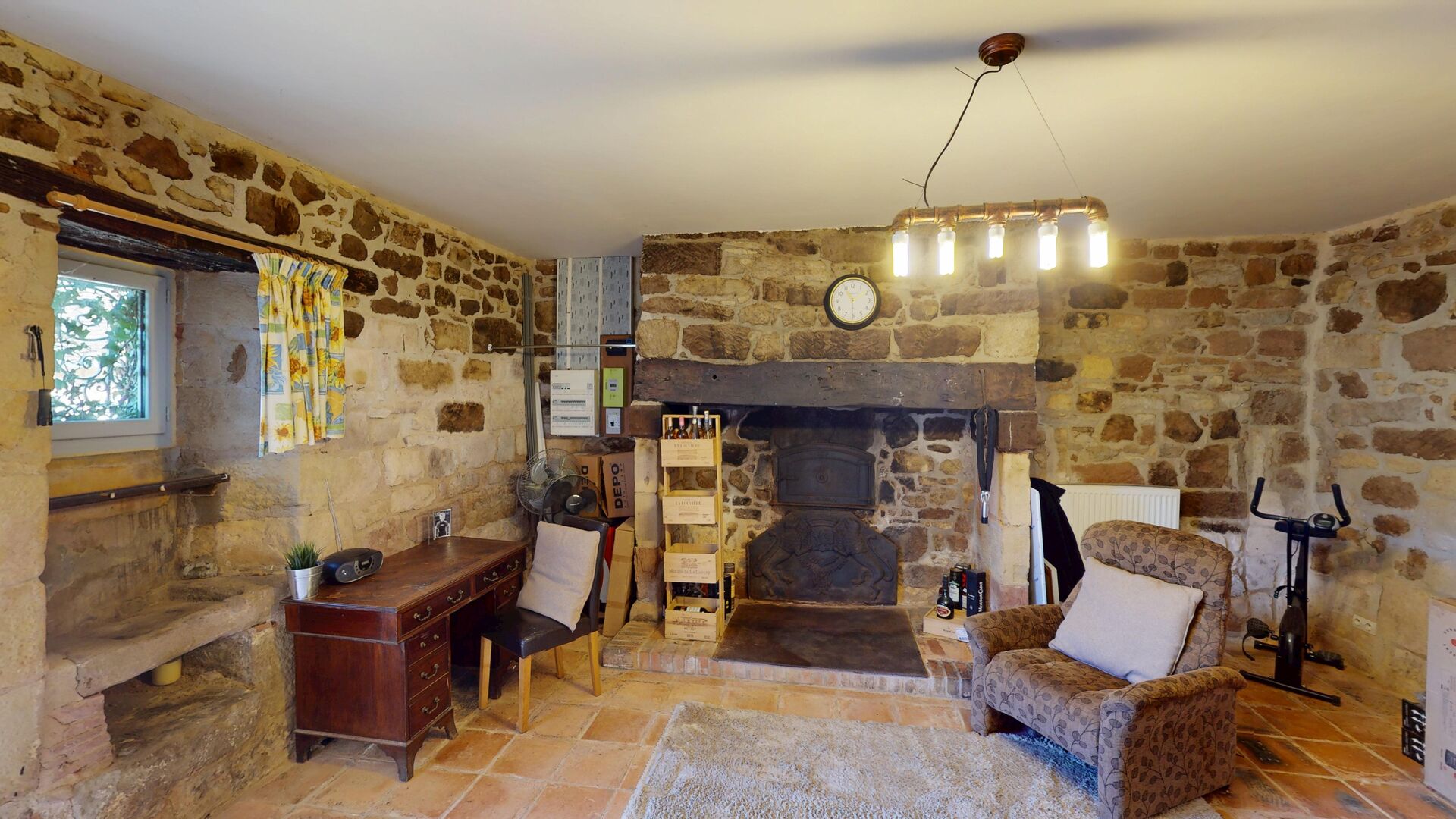 • Pièce(s) Une belle pièce rustique d'environ 26 m² avec cheminée, four à pain et évier en pierre.