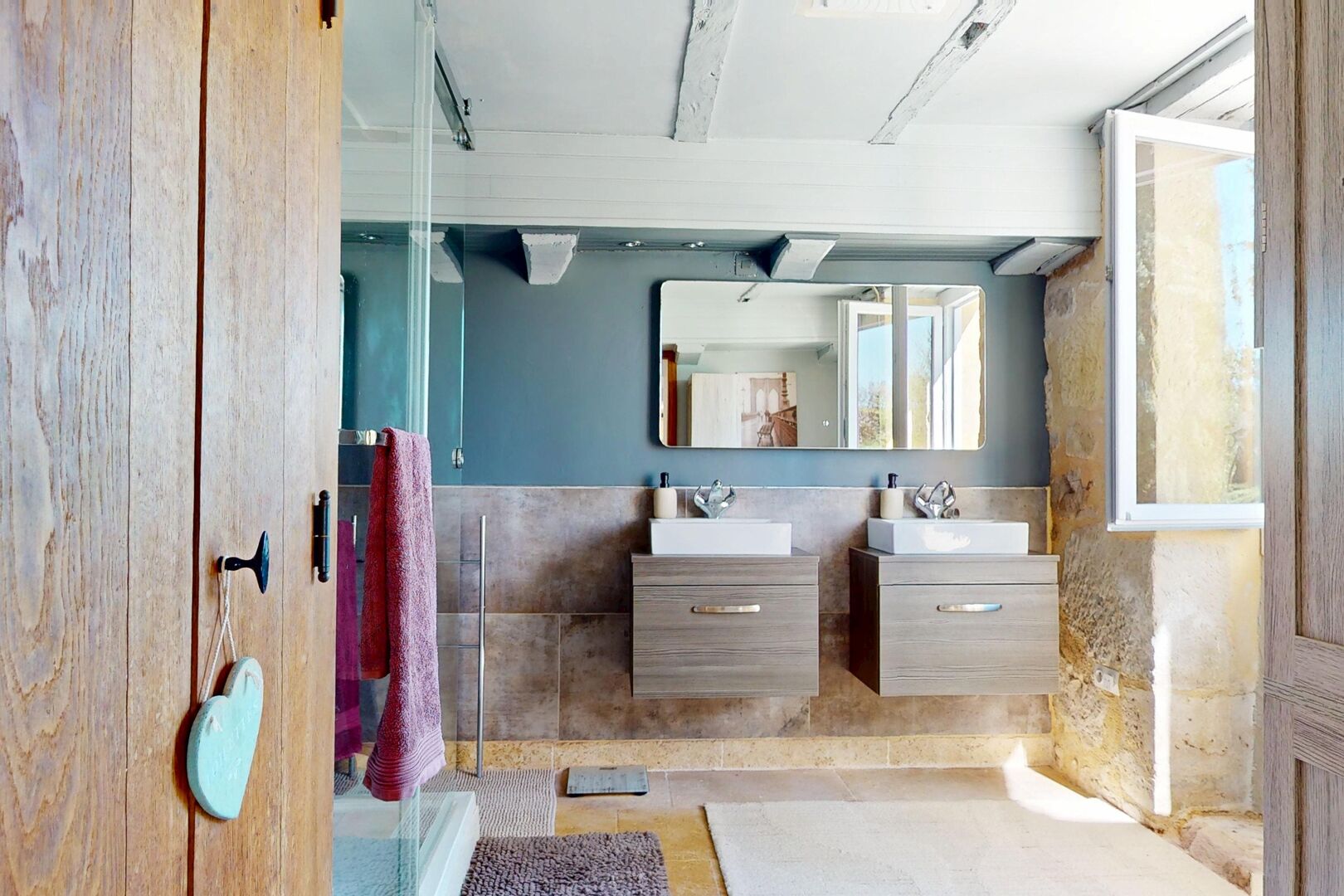 • Hall(s) d'entrée Environ 26 m² - pierres et poutres apparentes, dalles pierre de Bourgogne.