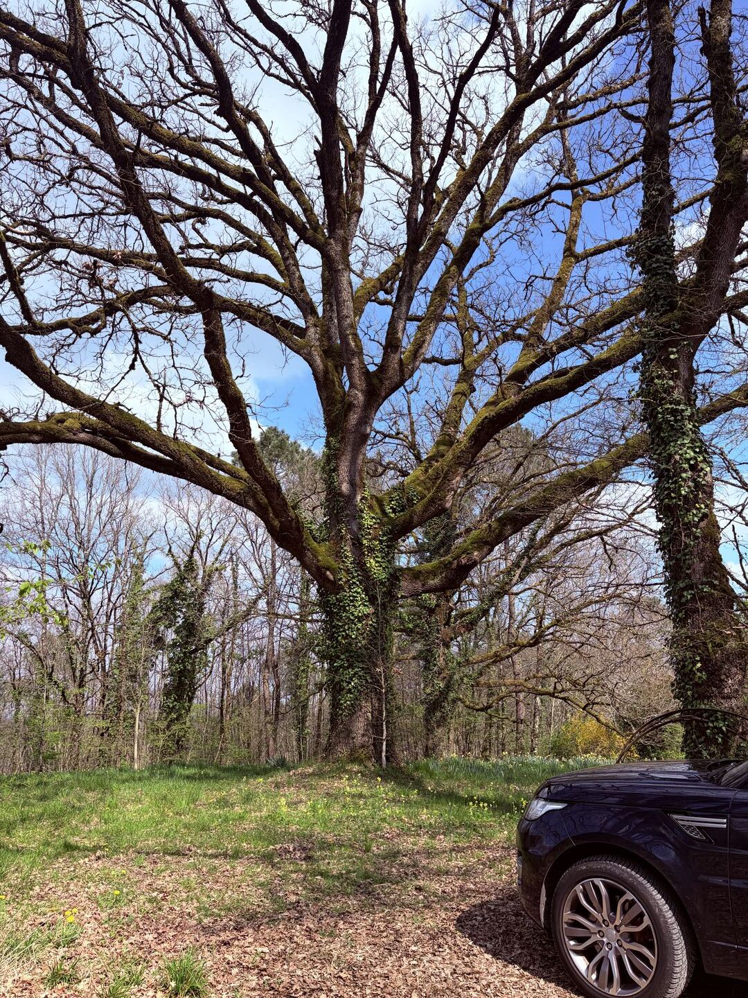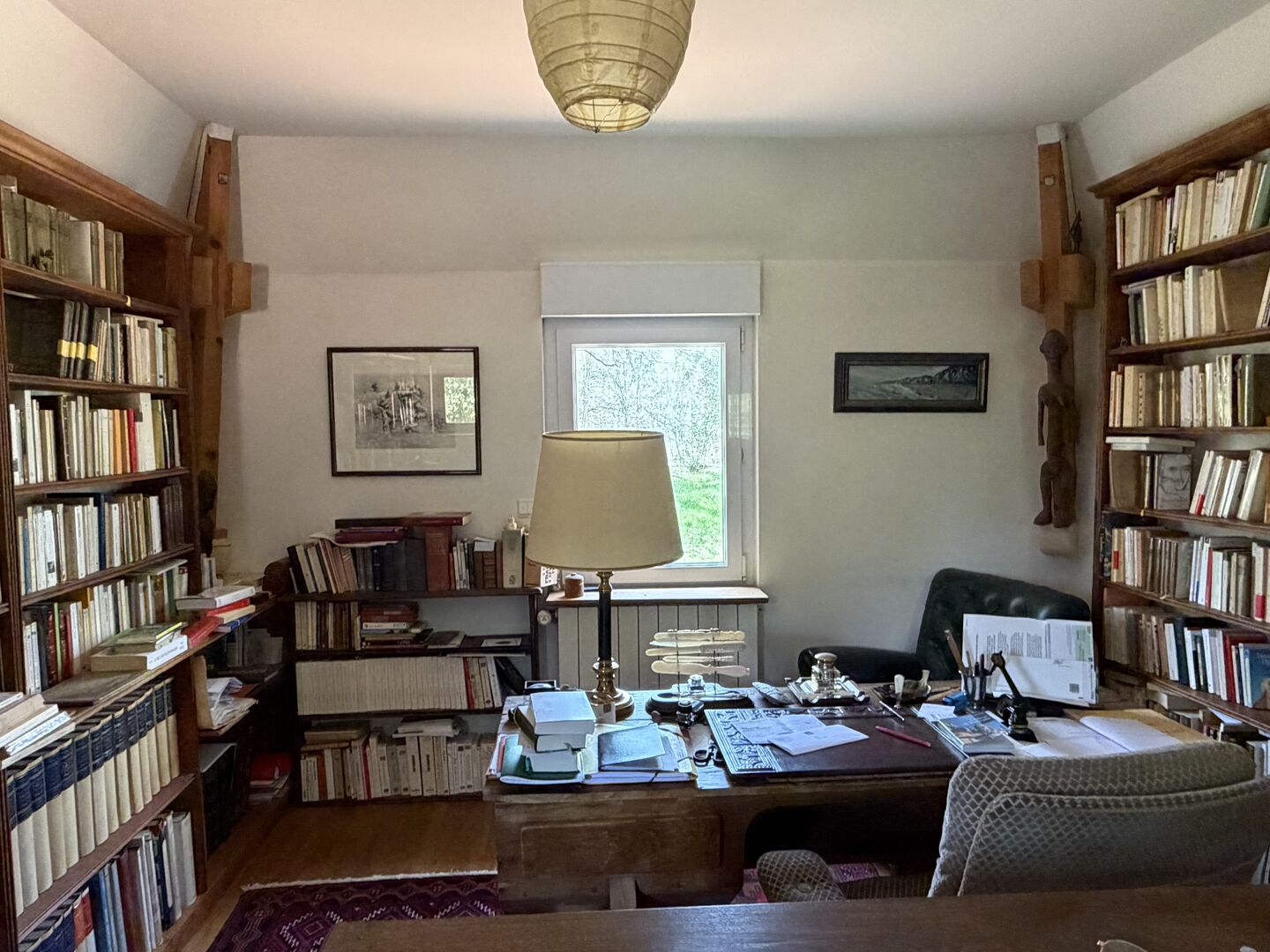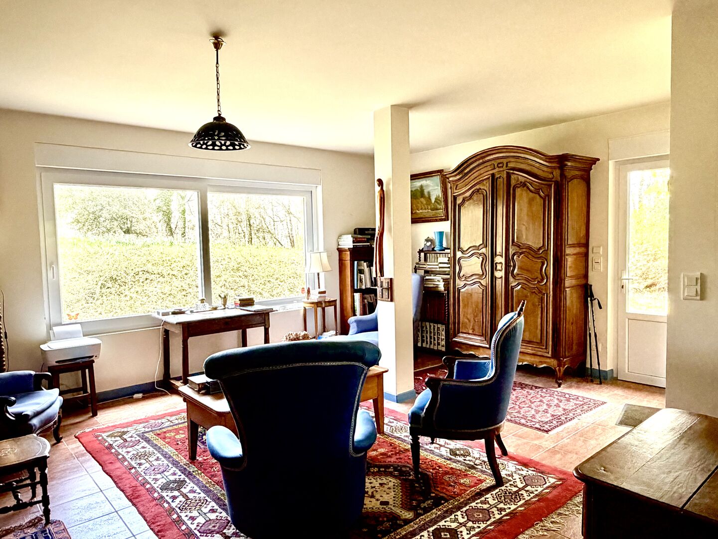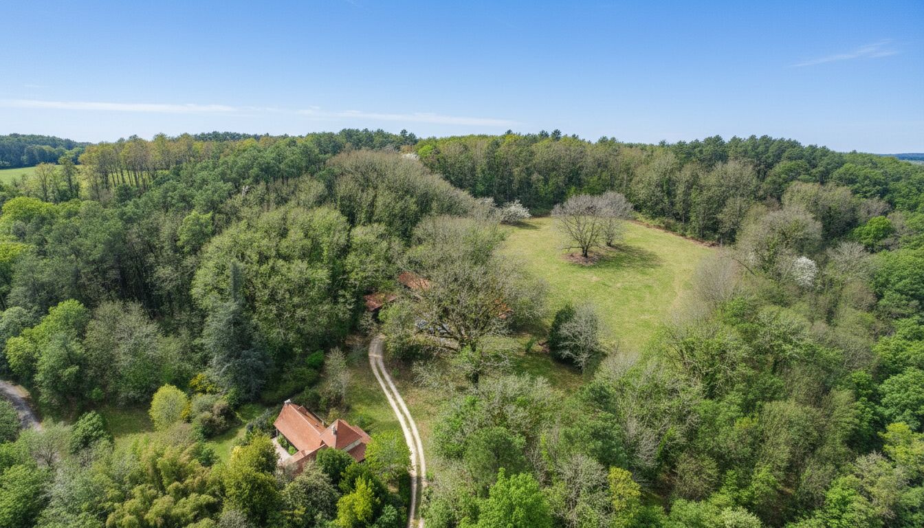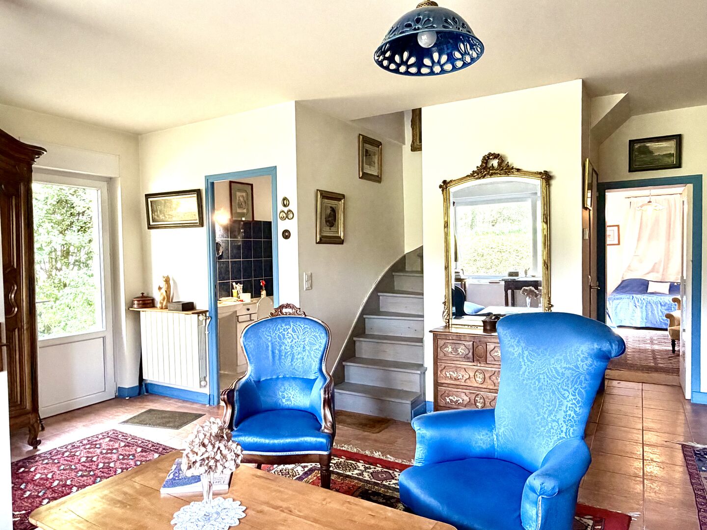Superbe situation, calme, sur hauteurs et sans voisin visible pour cette petite propriété de caractère sur 2.8 ha avec jardin buccolique, clairière et forêt avec chênes centenaires.