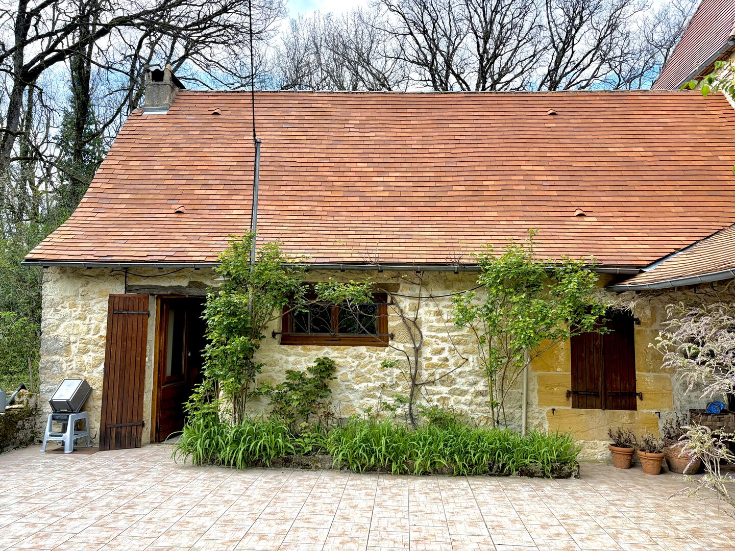 Située dans le Périgord Noir, c’était une petite maison en pierre, qui a été agrandie par ses propriétaires qui le sont depuis plus de 50 ans. Elle offre un cadre bucolique et un environnement très calme. À l’intérieur, une belle pièce avec cheminée d’époque s’ouvre sur une grande terrasse, dont une partie couverte par une glycine. On arrive à la maison par une allée privée, entourée de plus de 60 variétés d’arbustes, avec de magnifiques chênes centenaires. Le terrain de 2.8 hectares comprend une très belle clairière et de la forêt. La maison comprend quatre chambres, un second salon moderne, deux salles d’eau, un chauffage central, et de petites dépendances, dont un atelier d’artiste. Sans voisins visibles, à 20 minutes de Sarlat et 10 minutes de Montignac. Cette maison offre ainsi un très beau cadre intime, garantissant une belle qualité de vie. » Les informations sur les risques auxquels ce bien est exposé sont disponibles sur le site Géorisques : www.georisques.gouv.fr