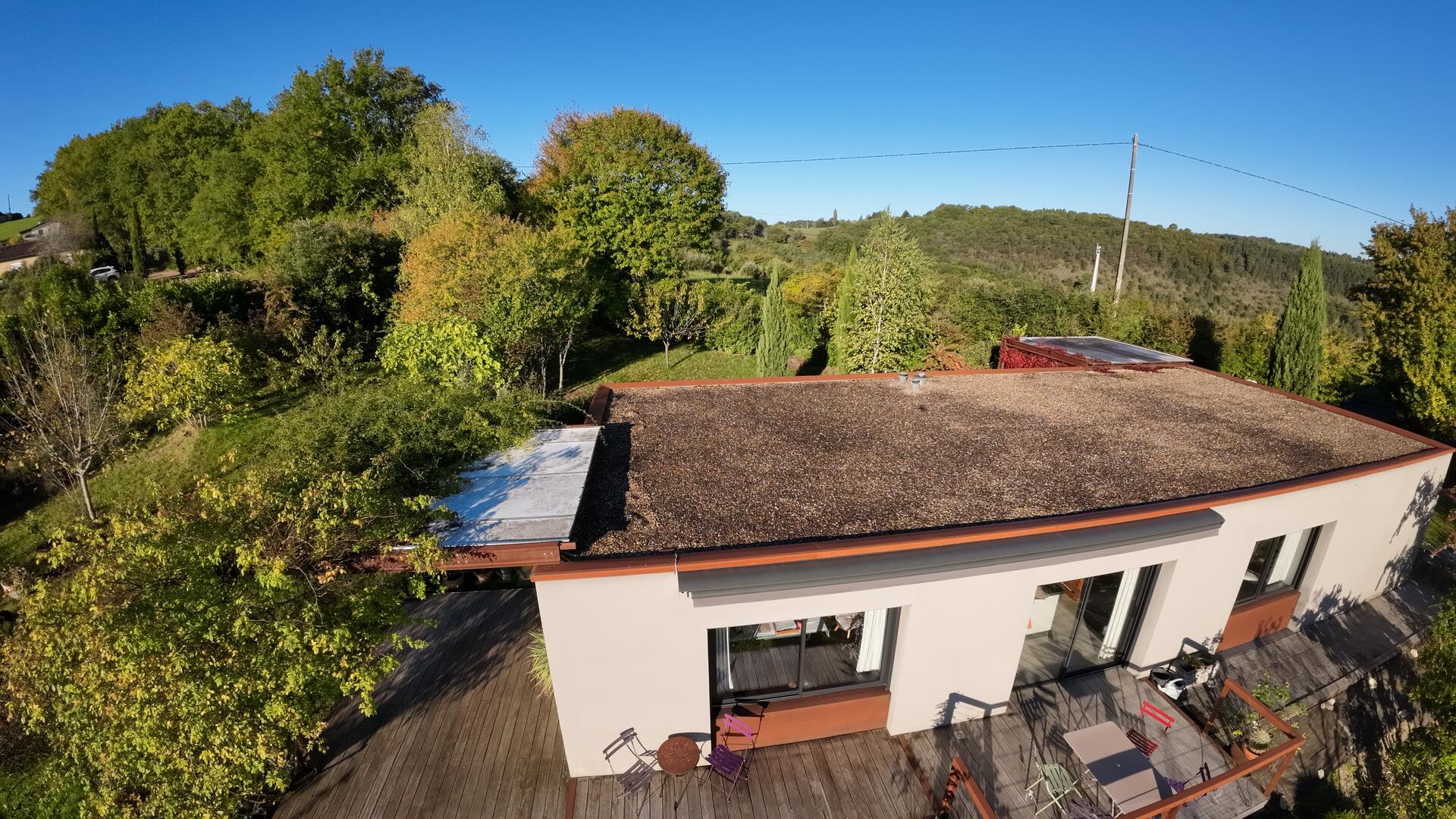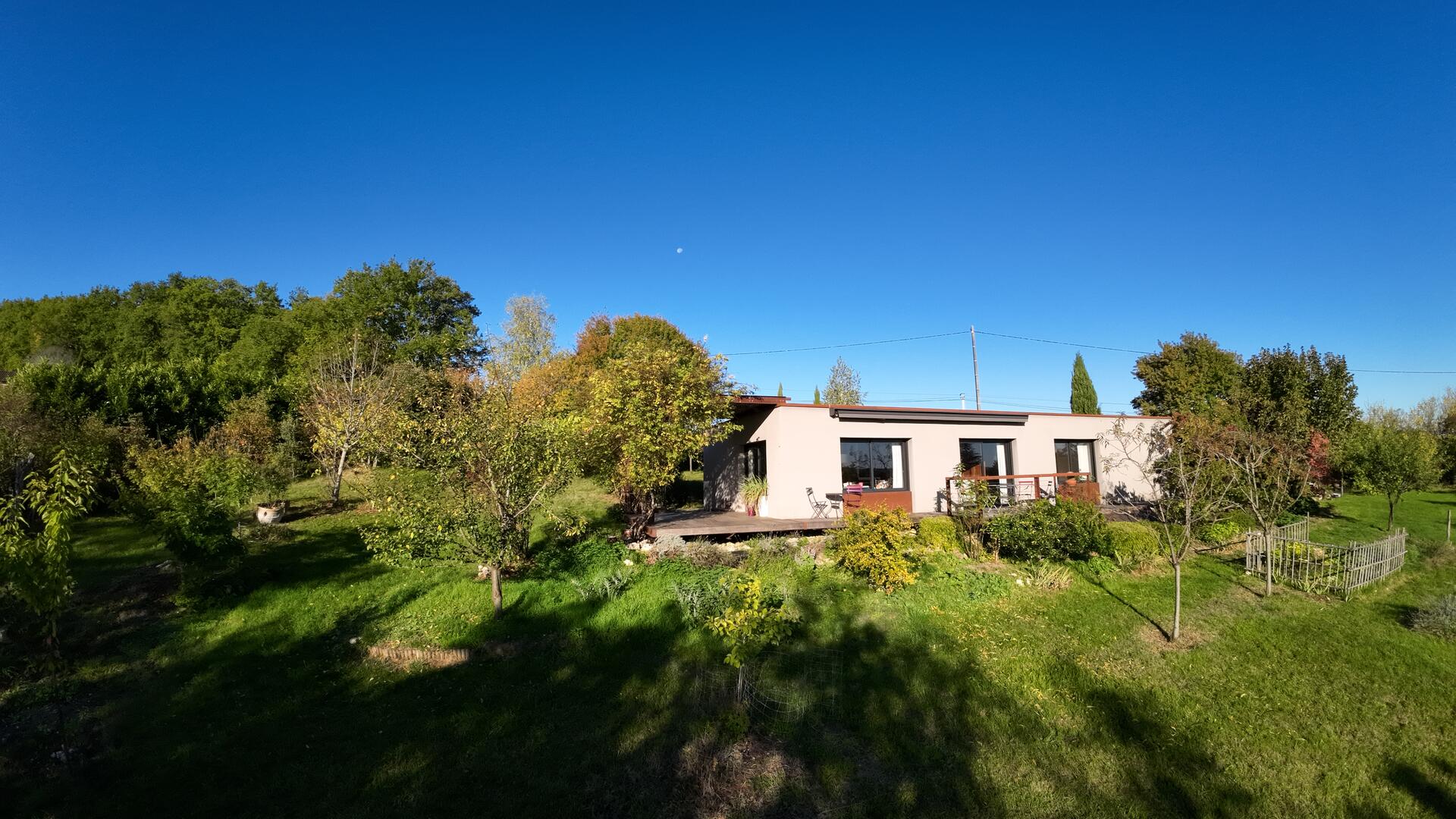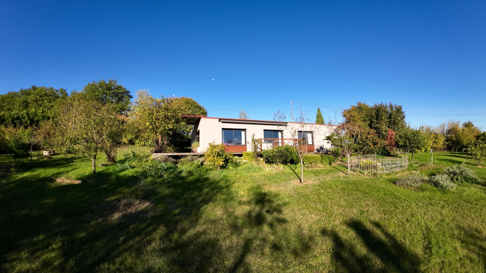 Située dans un environnement paisible et verdoyant, cette belle maison contemporaine construite il y a tout juste 10 ans séduit par son architecture moderne, ses volumes généreux et ses prestations de qualité. D’une surface habitable d’environ 98 m², elle propose une vaste pièce de vie lumineuse de 34 m², baignée de lumière grâce aux grandes baies vitrées et offrant un accès direct aux terrasses et au jardin. Une cuisine ouverte entièrement équipée avec îlot central prolongée par un coin repas convivial et fonctionnel. Deux chambres de 16,5 m² et 11m² avec placards intégrés et vue sur le jardin. Une salle de bains moderne de 7,5 m² avec douche à l’italienne et baignoire. Un cellier pratique de 8,5 m². À l’extérieur, construction de qualité avec façades rehaussées d’acier Corten, effet rouillé esthétique et durable. Le terrain d’environ 4 700 m², arboré et paysagé, offre un cadre de vie serein et préservé avec plusieurs terrasses agrémentées de voiles d’ombrage et d’un store banne. L’orientation sud-est permet de profiter d’une excellente luminosité tout au long de la journée. Un abri voiture attenant et un espace de stationnement complètent le tout. Les informations sur les risques auxquels ce bien est exposé sont disponibles sur le site Géorisques: www.georisques.gouv.fr